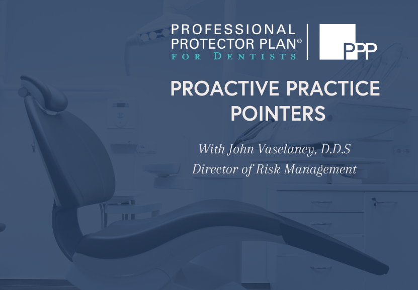 We know it’s hard to find the time to read risk management articles, even though the information they provide is critical to protecting you and your practice. That’s why we’ve introduced Proactive Practice Pointers presented by PPP®’s Risk Management Director, Dr. John Vaselaney! These new weekly social media posts pack a punch of information on […]